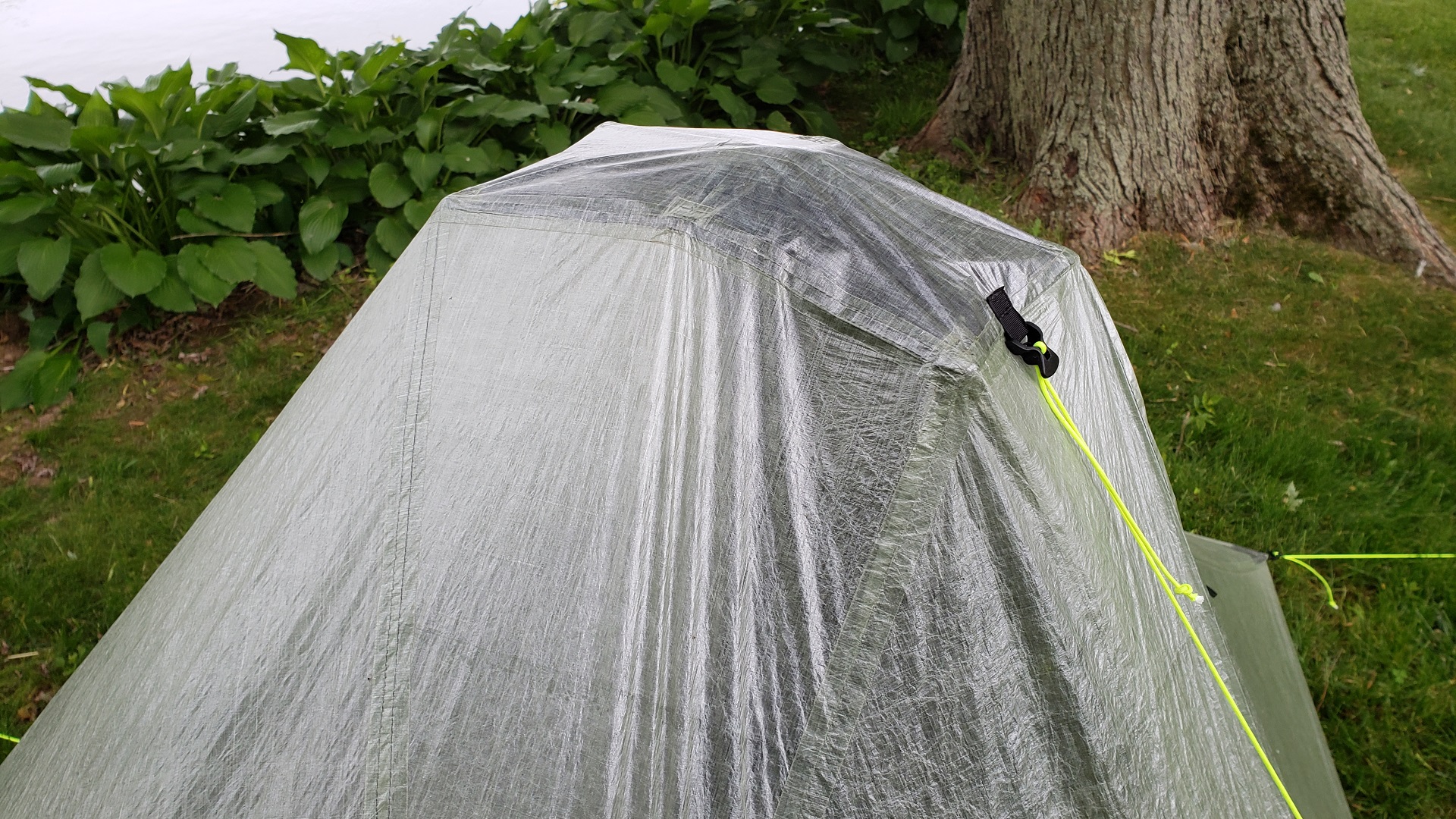 The default material choice on this tent is .51 oz/sqyd Dyneema Composite Fabric. It has high tensile strength and